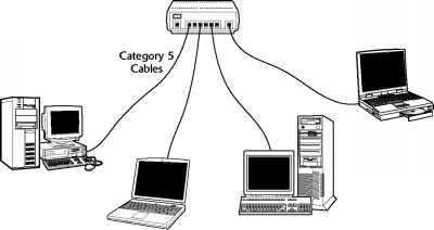 The original Ethernet standard used a thick coaxial cable, nearly half an inch in diameter. That wiring is called thickwire or thick Ethernet, although the IEEE 802.3 standard calls it 10Base5. That designation means several things The data-transmission rate is 10 megabits per second (10 Mbps) the transmission is baseband (which simply means that the cable's signal-carrying capacity is devoted to transmitting Ethernet packets only) and the total length of the cable can be no more than 500...