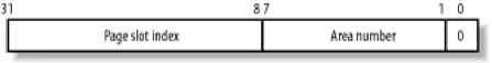 A swapped-out page is uniquely identified quite simply by specifying the index of the swap area in the swap_info array and the page slot index inside the swap area. Since the first page with index 0 of the swap area is reserved for the swap_header union discussed earlier, the first useful page slot has index 1. The format of a swapped-out page identifier is illustrated in Figure 16-2. Figure 16-2. Swapped-out page identifier Figure 16-2. Swapped-out page identifier The SWP_ENTRY type,offset...