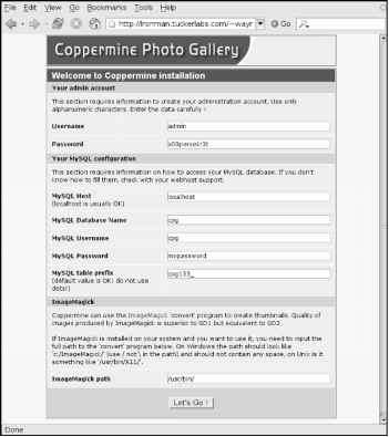 Install the unzip and imagemagick programs. Unzip is used to unpack the CPG program after downloading, and imagemagick is used to resize images and create thumbnails apt-get install unzip imagemagick ImageMagick path The directory containing the imagemagick binary. On Debian systems, this is usr bin.