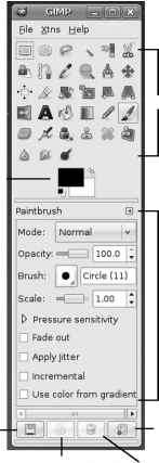 The GNU Image Manipulation Package, affectionately known as the GIMP to its friends, is a powerful graphics package. The GIMP provides a comprehensive range of functionality for creating different types of graphics. It includes tools for selections, drawing, creating paths, masks, filters, effects, and more. It also includes a range of templates for different types of media such as Web banners, different paper sizes, video frames, CD covers, floppy disk labels, and even toilet paper. Yes, toilet paper. You can load the GIMP by clicking Applications Graphics GIMP Image Editor. Unlike Adobe Photoshop, the GIMP does not place all of its windows inside a single large window, and instead has a number of separate child windows. This can be a little confusing at first for new users. To get you started, let us run through a simple session in the GIMP. Start the GIMP by clicking Applications Graphics GIMP Image Editor.