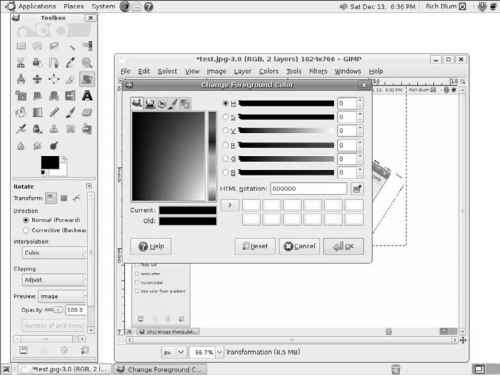 The GIMP is a free software program for manipulating photographs and graphical images. To create images with GIMP, you can either import a drawing, photograph, or 3D image, or you can create one from scratch. You can start GIMP from the system menu by selecting Graphics C GIMP Image Editor or by typing gimp& from a Terminal window. In many ways, GIMP is similar to Adobe Photoshop. Some people feel that GIMP's scripting features are comparable to or even better than Actions in Adobe Photoshop. One capability that GIMP lacks, however, is native support for CMYK (cyan-magenta-yellow-black) separations. If CMYK is not critical for your graphics needs, you will probably find GIMP to be just as powerful and flexible as Photoshop in many ways.