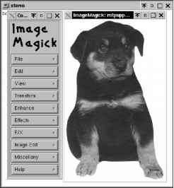 Another powerful graphics manipulation program is ImageMagick. This program limits you to creating simple graphics as compared with Gimp. However, ImageMagick does enable you to make changes to existing graphics, which is its real power. If all you ever need to do is manipulate images by cropping, resizing, rotating, or other such procedures, then look no further. To install ImageMagick, use dselect to find and select the program named imagemagick for installation. The package installs the suite of programs that make up ImageMagick. Once the program is installed, you can launch it through the window manager's application menu by looking under Viewers. Officially, the Debian install of ImageMagick considers itself a viewer instead of belonging to the graphics category and is found in the Debian menu tree. Navigating ImageMagick's main menu is simple, as you can see from the left side of Figure 7-6. From this main menu, you can access all the different features this program has to...