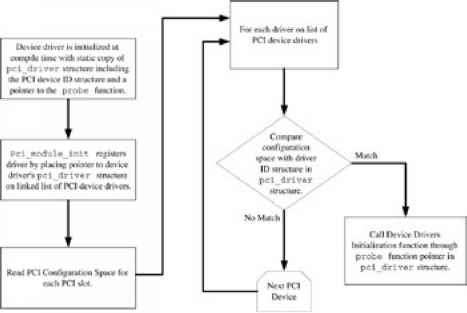 Network device initialization begins when the Linux kernel discovers a device of a certain type by calling a probe function looking for a match of a particular hardware interface with its associated driver. Once a match is discovered, the driver's specific initialization function is called. This function is generally typed_devinit or_init, both of which are defined in file linux include linux init. h. When the network interface driver's initialization or probe function is called, the first...
